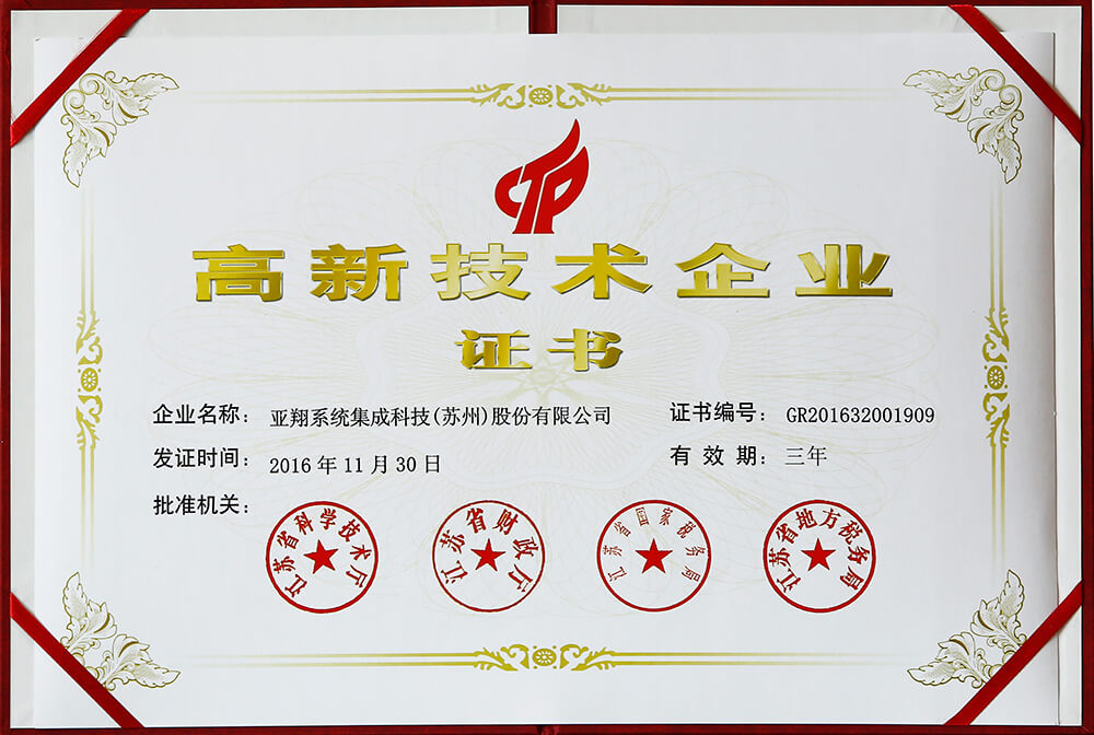 頒發高新技術企業證書2016年