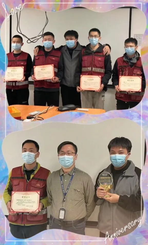 接著,蘇州和艦廠務工程處為亞翔四位工程師頒發“優秀個人獎”,肯定了他們的安全意識優良、技術服務專業,并合影留念。