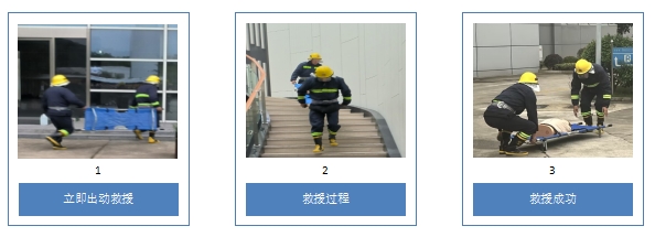 全員疏散至緊急集合點后,設計部清點人員時發現1人未到,立即報告至總指揮,總指揮向搶險救援組下達救援命令,隨后救援人員趕至現場,成功將被困人員救出。