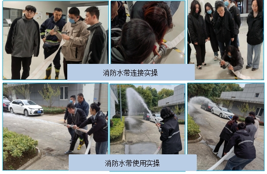 現場指揮馮工講解并示范了消防水帶的連接方法及使用方法。隨后員工進行消防水帶的連接實操,實操完畢,由搶險救援組同仁配合進行了消防水帶噴水實操,各位同仁積極參與實操演練環節。