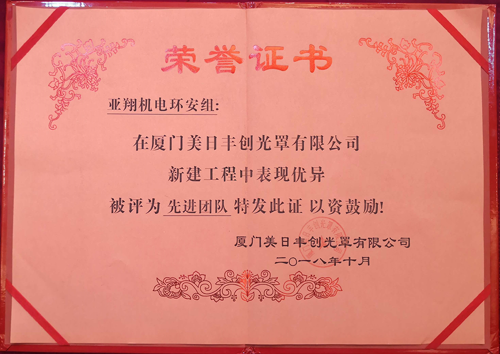 201810獲評(píng)廈門(mén)美日豐創(chuàng)先進(jìn)團(tuán)隊(duì)