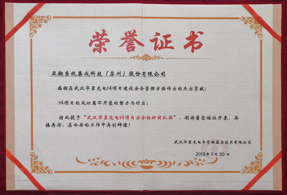 20180720獲武漢華星光電T4項目安全標桿團隊獎