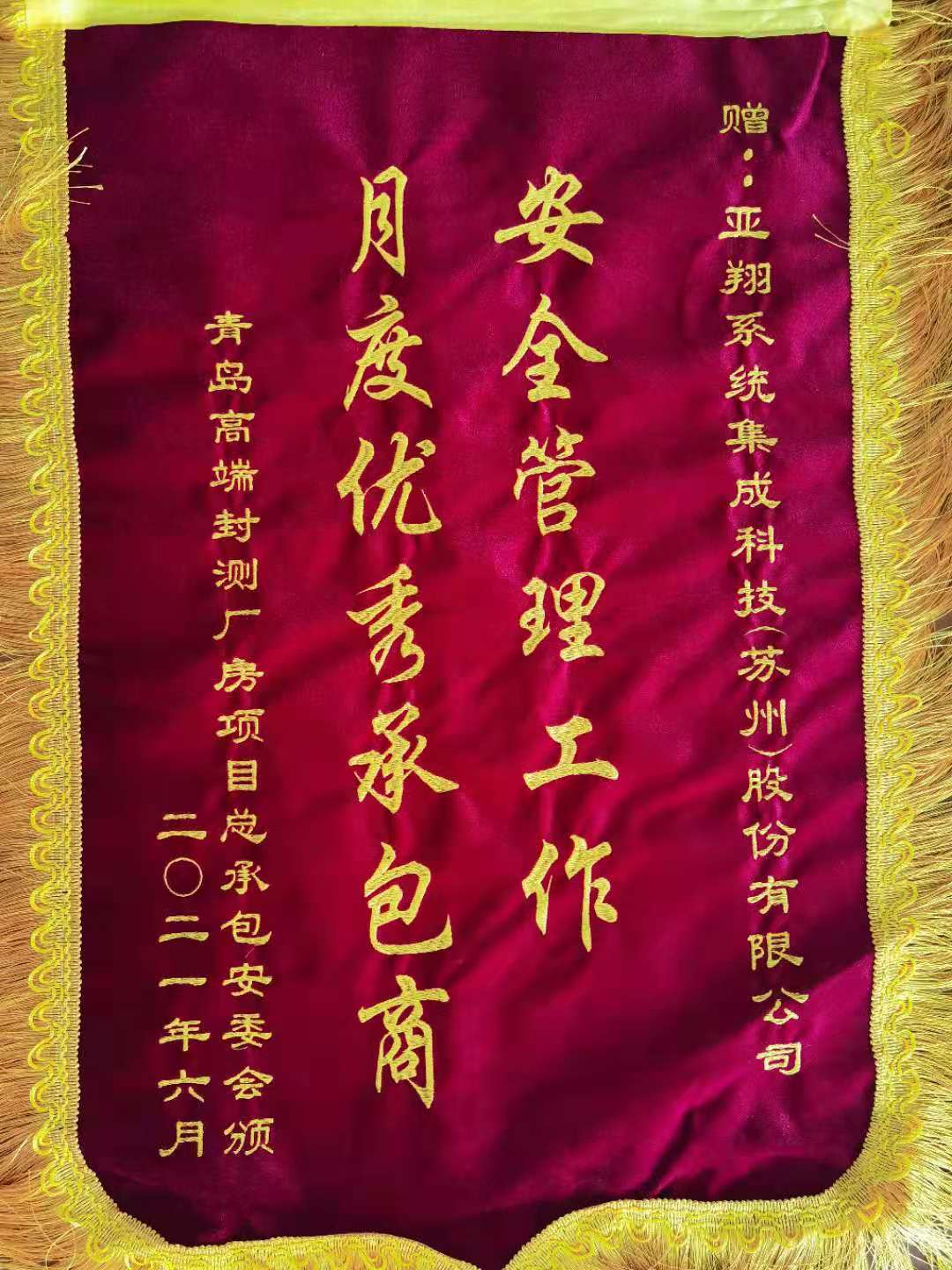 202106獲安全管理工作月度優(yōu)秀承包商