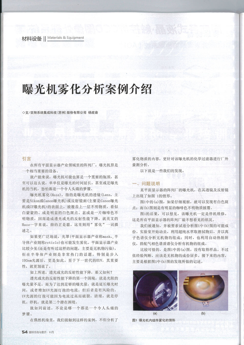 國際光電與顯示第153期-曝光機霧化分析案例介紹