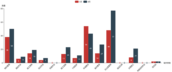 環(huán)安管理者可通過缺失要因統(tǒng)計(jì)分析報(bào)表掌握當(dāng)前項(xiàng)目哪種類別的缺失呈上升趨勢,對於上升速率較快的類別要及時(shí)進(jìn)行干預(yù),對缺失數(shù)量占比較大的類別要重點(diǎn)關(guān)注。通過這些管理手段,力爭不要讓潛在的危險(xiǎn)發(fā)生,讓已出現(xiàn)的危險(xiǎn)及時(shí)被撲滅而不是持續(xù)擴(kuò)大,最終實(shí)現(xiàn)項(xiàng)目的安全生產(chǎn)。