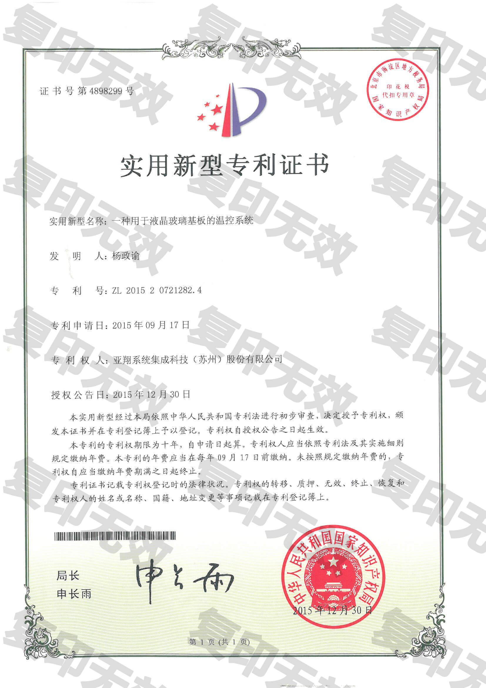 一種用於液晶玻璃基板的溫控系統