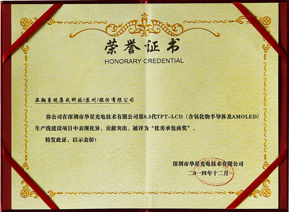 華星光電優(yōu)秀承包商2014年